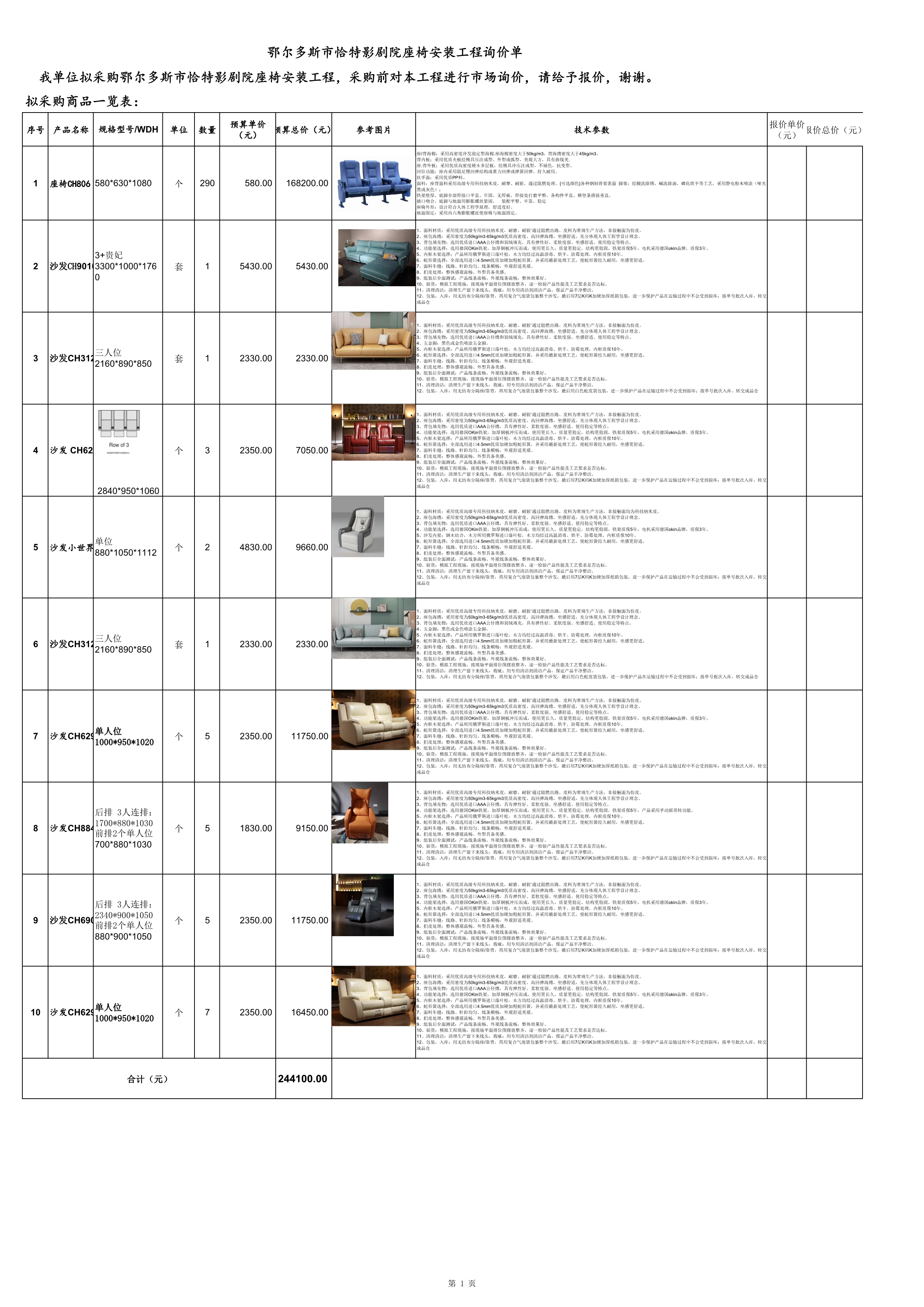 鄂爾多斯市恰特影劇院座椅安裝工程詢價(jià)單(二次)
